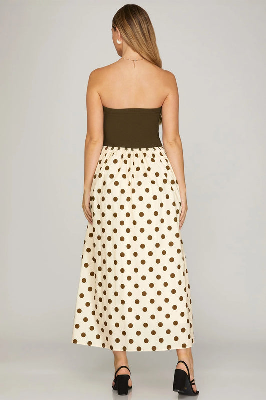 Black Polka Dot V-Neck Puff-Sleeve Midi Dress